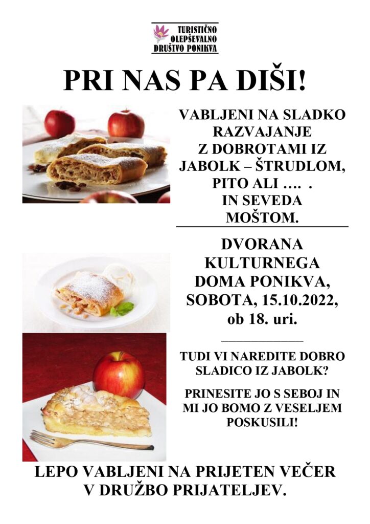 S prireditvijo želimo spodbuditi kulinarično ustvarjanje in druženje krajanov in obiskovalcev »Ponikve med sadovnjaki«, kot smo ugotavljali na enih prejšnjih Martinovih dnevih. Ker pravijo, da več glav več ve, bo to tudi priložnost za izmenjavo izkušenj ali pa samo pogovor med obiskovalci.